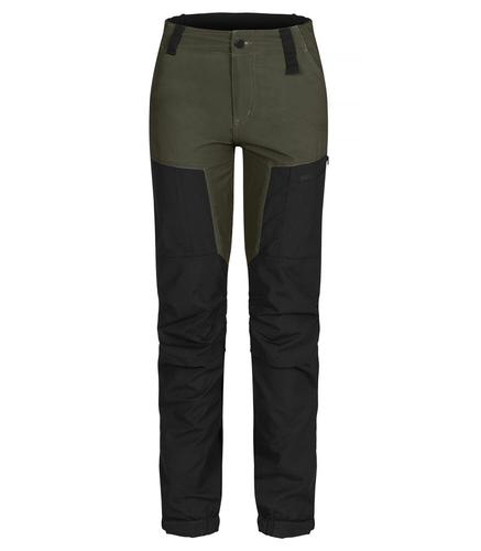 Moderne trekkingbuks med en behagelig og ventilerende 4-vejs stretch. Slidstærkt vind- og vandafvisende materiale i udsatte områder. Elastik i taljen og forformet knæ for en forbedret mobilitet. To frontlommer, to benlommer med lynlås og en bagpå. Justerbar benafslutning med elastik og velcro. Mulighed for isætning af knæpude.