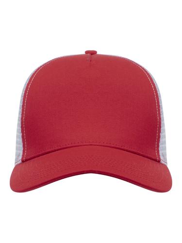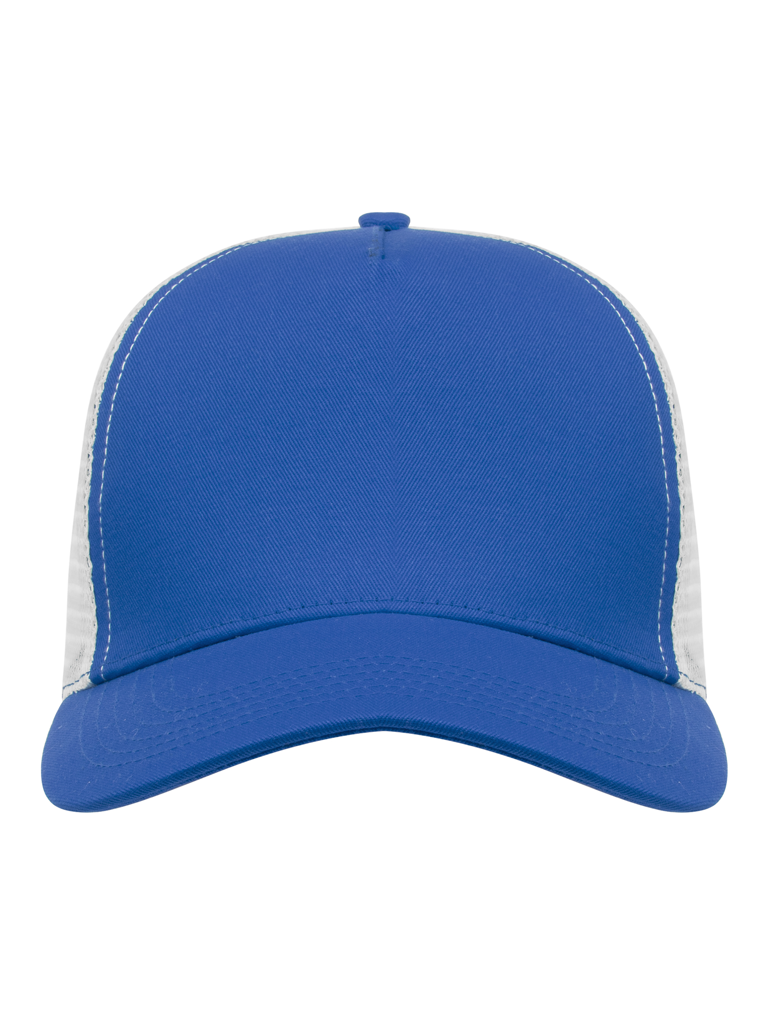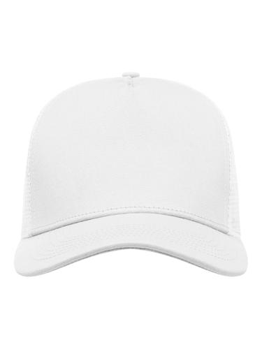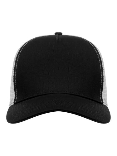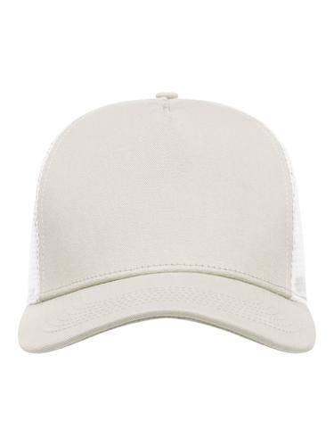 A trucker-style 5-panel cap made in brushed cotton twill with a polyester mesh back. Snapback closure. Light colors come with white mesh; dark colors with black mesh.