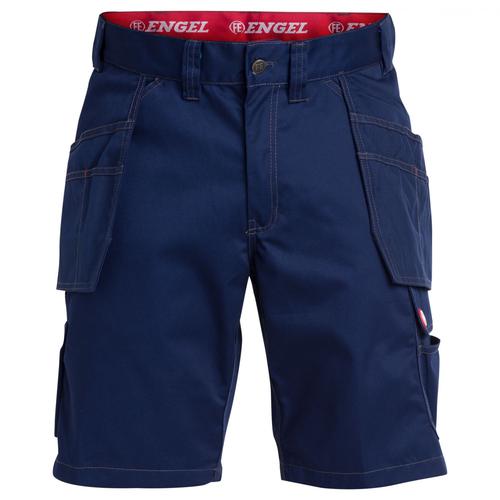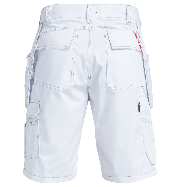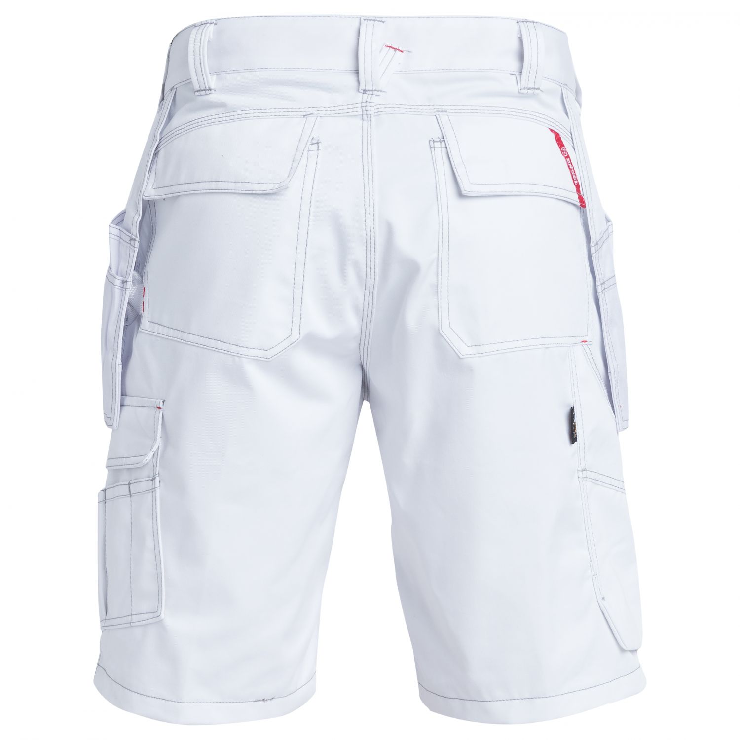 Funktionel håndværkershorts med kontraststikninger. To rummelige skrålommer samt to hængelommer foran. To baglommer med klap. Lårlomme med klap samt inddelinger til f.eks. skriveredskaber. Forstærket tommestoklomme med ekstra inddelinger og frithængende bund for optimal bevægelse. Regulerbar hammerstrop. Ekstra brede bæltestropper i siderne.