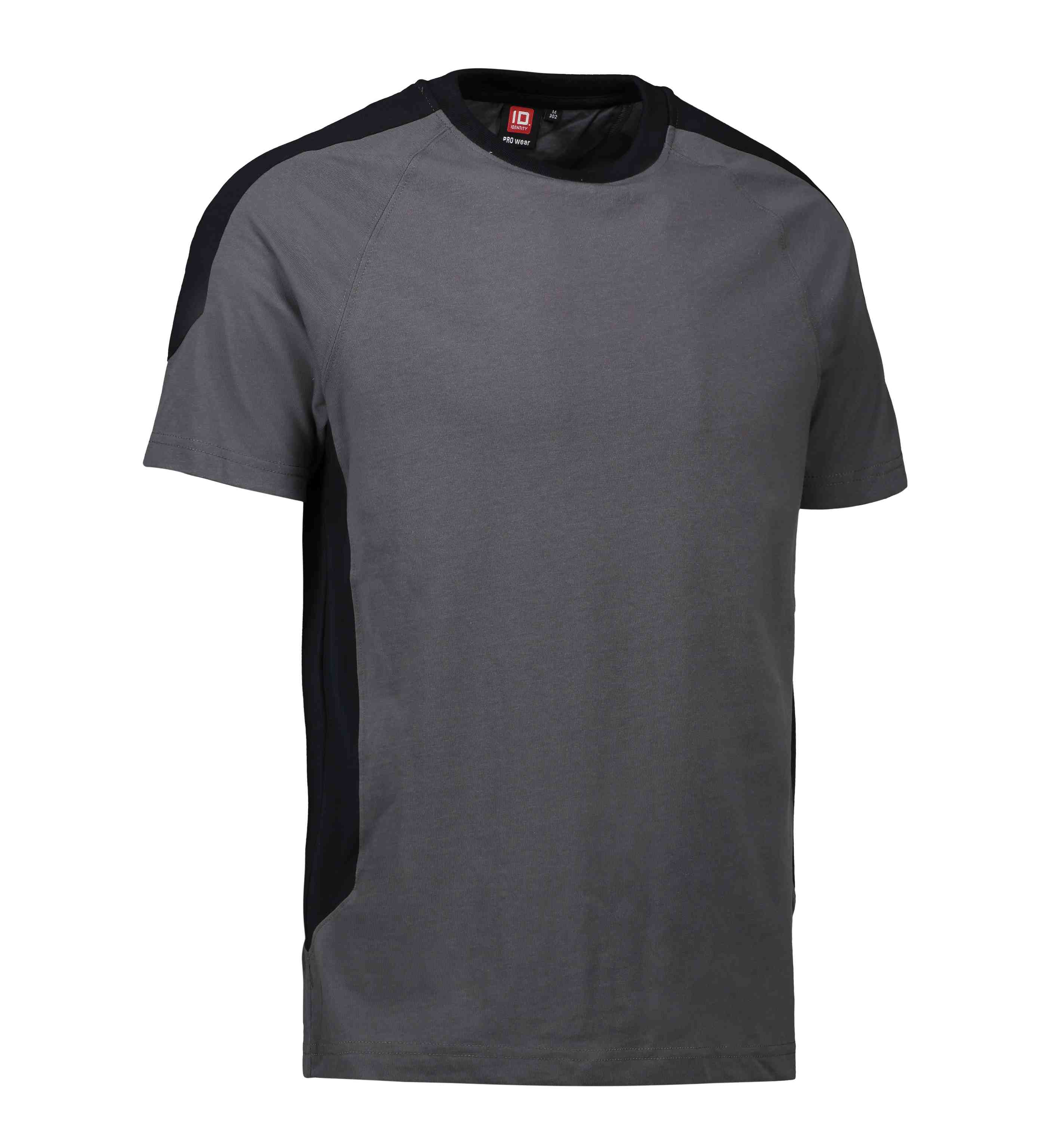 Ekstra slidstærk to-farvet T-shirt. Fire-lags halsrib, nakke- og skulderbånd og nakkespejl. T-shirten har gennemgået en forkrympningsproces ved meget høje temperaturer, både før og efter indfarvningen for ekstra stabilitet og lang levetid.
