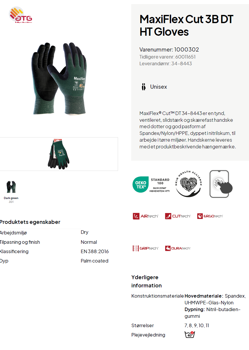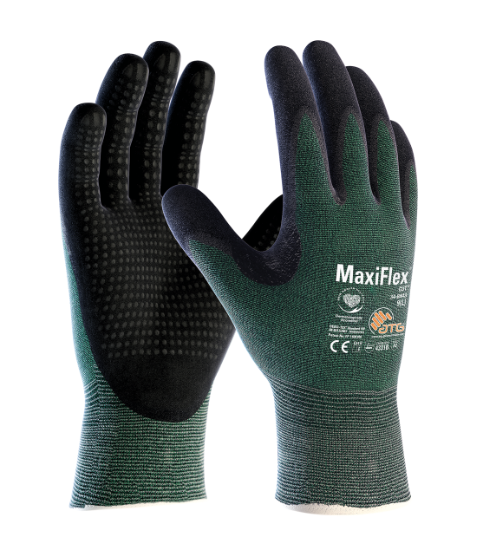MaxiFlex® Cut™ DT 34-8443 er en tynd, ventileret, slidstærk og skærefast handske med dotter og god pasform af Spandex/Nylon/HPPE, dyppet i nitrilskum, til arbejde i tørre miljøer.