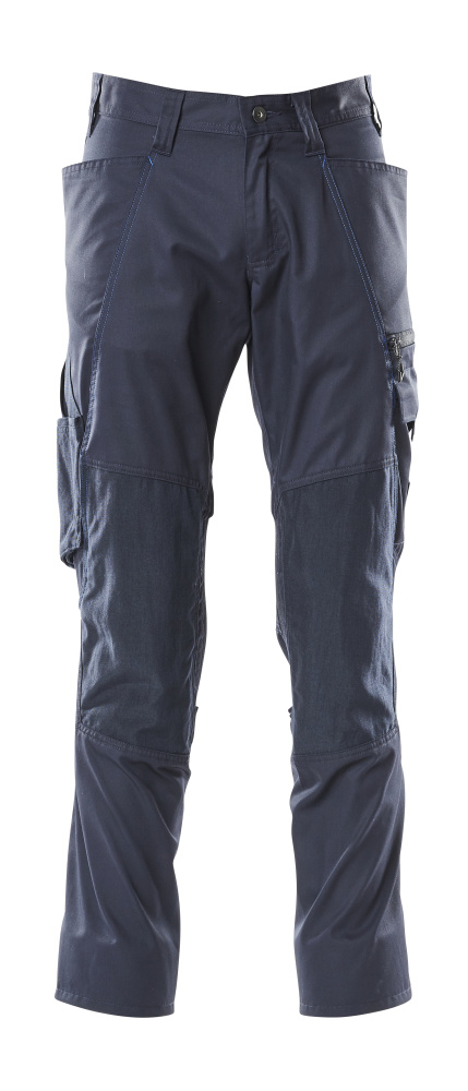 Særligt velegnet i varme omgivelser som følge af lav vægt og et højt indhold af bomuld. Den lave talje med formskåret linning sikrer, at bukserne følger og støtter alle kroppens bevægelser. Ergonomisk formede bukseben er konstrueret efter kroppens naturlige bevægelser. Knælommer i slidstærk CORDURA® er regulerbare, så knæpuderne får den optimale placering. Som standard i tre forskellige benlængder, så du kan vælge den bedste pasform og optimale placering af detaljer netop til dig. Ekstra synlig for omgivelserne ved hjælp af reflekseffekter. Produktet kan industrivaskes.
