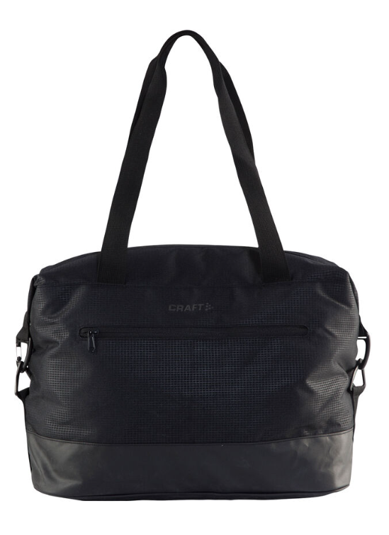 Skulderrem og bærehåndtag • Indvendig lomme i mesh • Indvendig lomme med lynlås for sikker opbevaring • Udvendig lomme med lynlås • Størrelsen kan justeres i siderne
