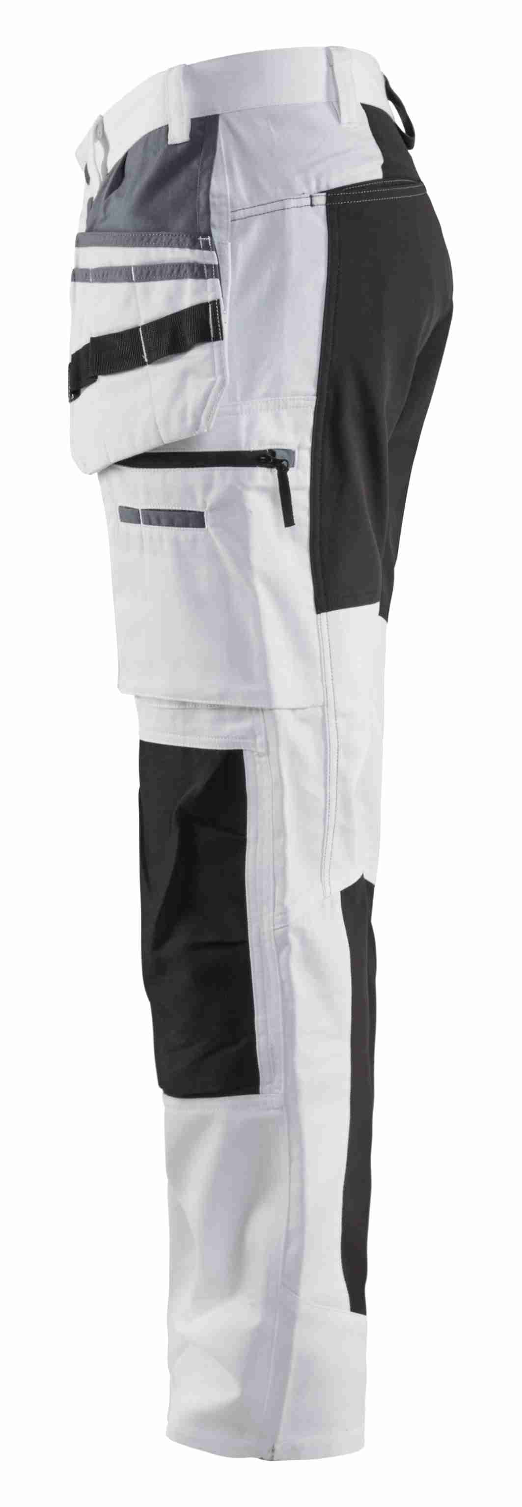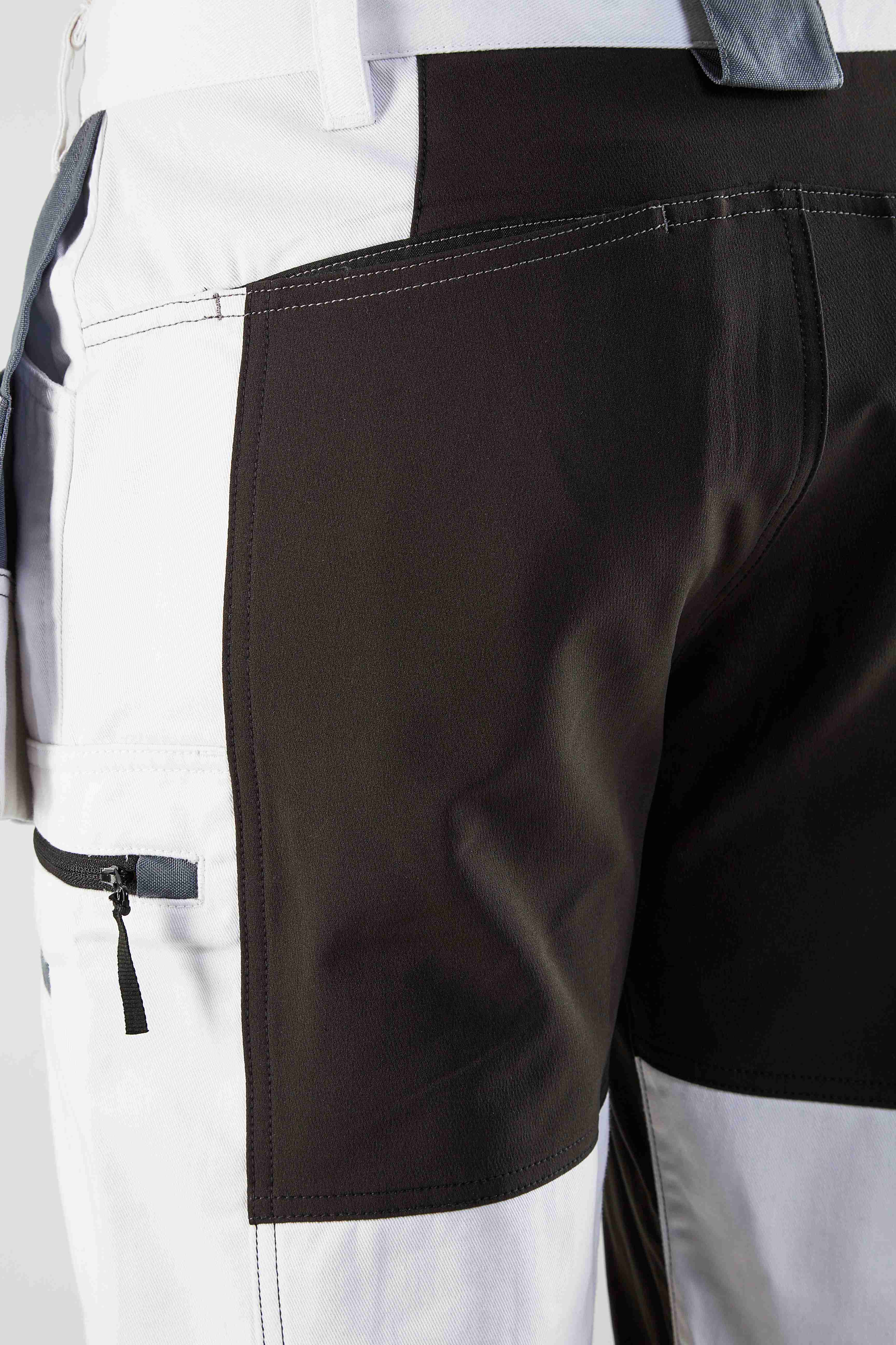 Moderne og komfortable maler bukser med værktøjslommer, udvendige knælommer og stretch zoner på skridt, knæ, bagdel og læg for øget bevægelsesfrihed og komfort. Materialet har fremragende absorberingsegenskaber takket være den høje andel af bomuld. Bukserne har mange funktionelle lommer og en specialdesignet, forstærket lomme til malerværktøj. Malerværktøjslomme og sømlommer er forstærket med CORDURA® stof og knæene med stretch CORDURA® for øget komfort. Findes også i damemodel 7910.