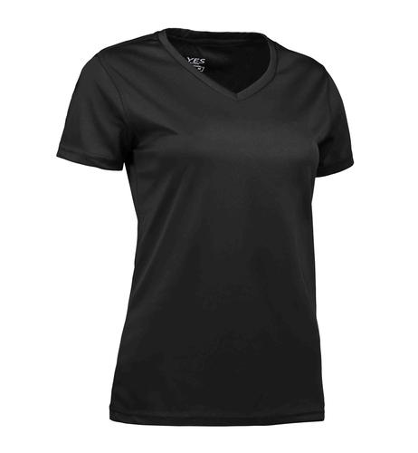 Funktionel T-shirt med V-hals. Svedtransporterende, åndbar og hurtigttørrende kvalitet. Høj funktionalitet til en skarp pris. Let figursyet.