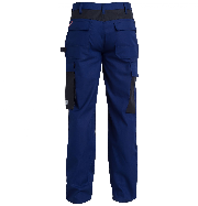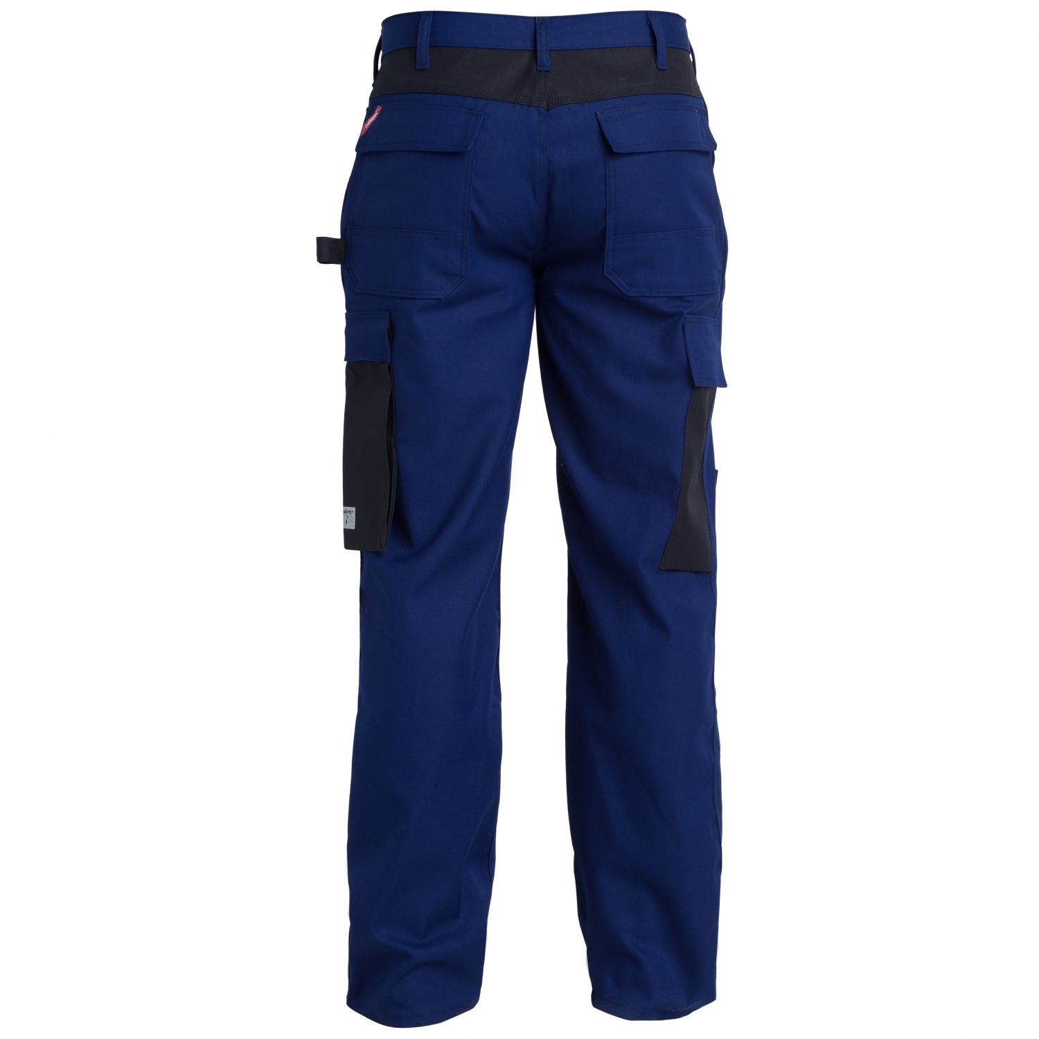 Buks med stiklommer som er skjult med klapper. Baglommer med forstærkninger og klapper. Hammerstrop. Tommestoklomme. Knæforstærkning/knælommer med velcrolukning i bunden. Gennemtænkte detaljer ved lommer og læg, der forhindrer gløder i at sætte sig fast. Antistatisk, flammehæmmende og beskytter mod væskeformige aerosoler, spray og lette stænk fra kemikalier.