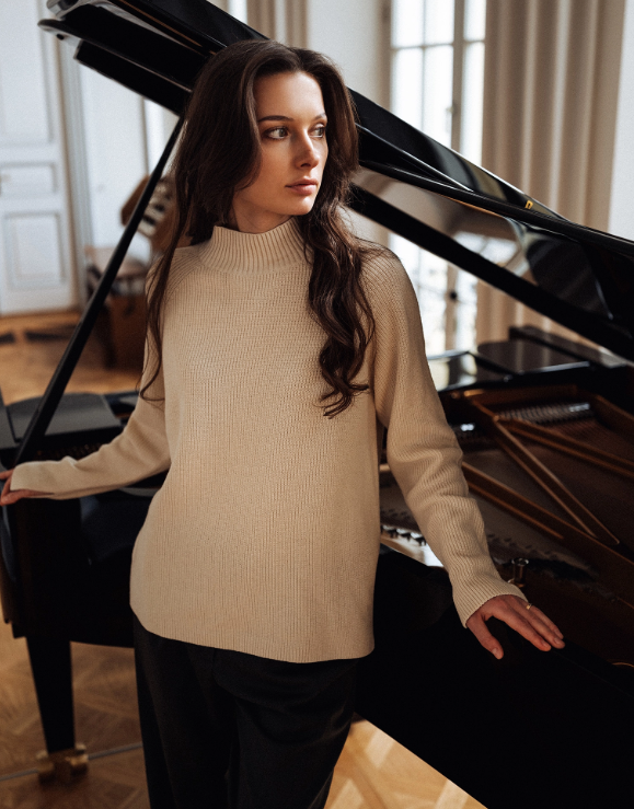 Yarn: 55% RWS Wool / 45% Cotton Ply: 2/34 (2-ply) Knit: 7 gauge Weight: 330 g/sqm Hems: 1x1 rib knit Dye: Top dyed melange Fully fashioned