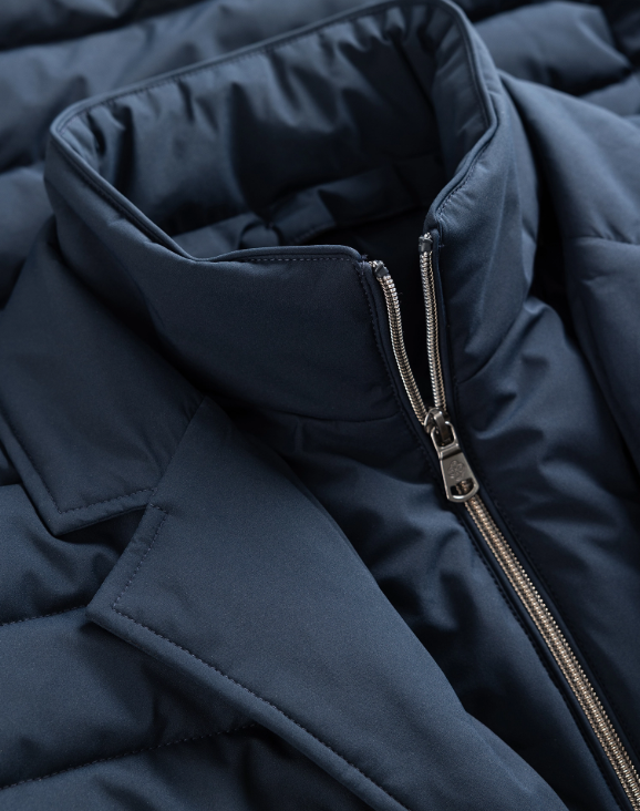 Shell: 100% GRS certified recycled polyester Padding: 100% GRS certified recycled polyester Lining: 100% GRS certified recycled nylon Finish: Fluorocarbon-free Rudolf BionicFinish® ECO Mechanical stretch fabric 10 000 WP / 10 000 MVP