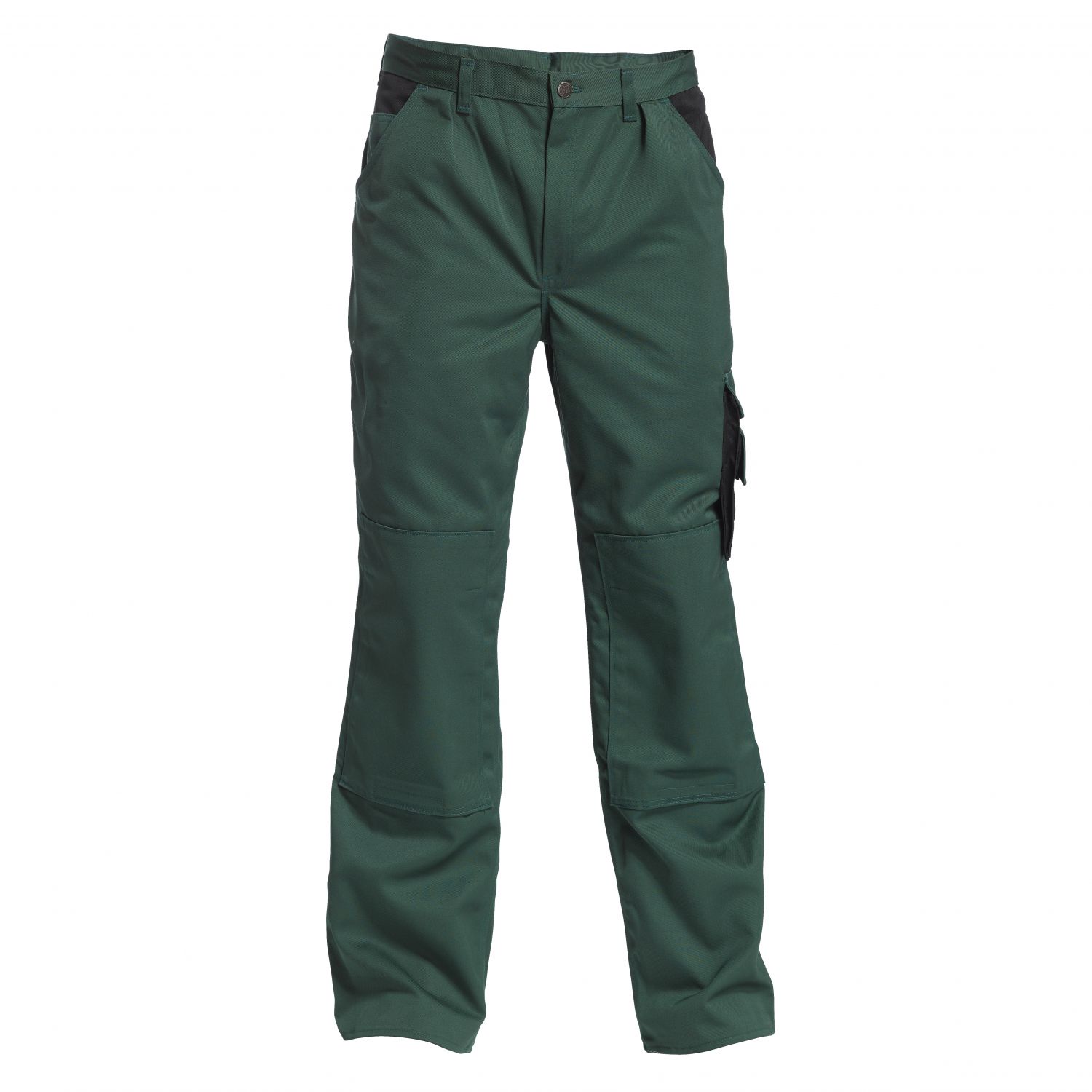 2-farvet buks i flot design. 2 sidelommer, den ene med møntlomme. 2 baglommer. Rummelig lårlomme med mobiltelefonlomme og blyantlommer. Hammerstrop. Forstærket tommestoklomme med læg for ekstra plads. Knæforstærkning/knælomme med velcrolukning i bunden samt indstillingsmuligheder til knæpude.