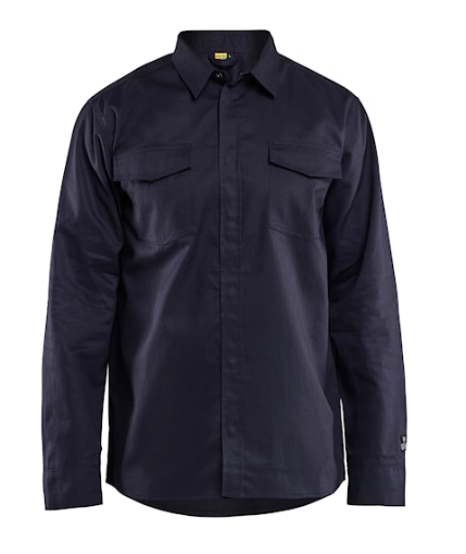 Funktionel flammehæmmende skjorte til udsatte miljøer. Denne flammehæmmende skjorte er specielt velegnet til miljøer, hvor der kræves flammehæmmende beskyttelse. Smart, funktionelt design med skjulte knapper foran og quick-release funktion. Materialet er komfortabelt med en god pasform og bevægelsesfrihed. Skjorten har to brystlommer med en praktisk blyantlomme. Certificeret i henhold til EN 1149-5, EN ISO 11612 A1, A2, B1, C1, El og IEC 61482-2, Klasse 1.