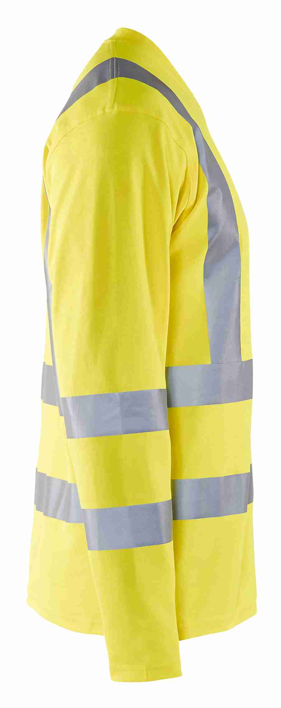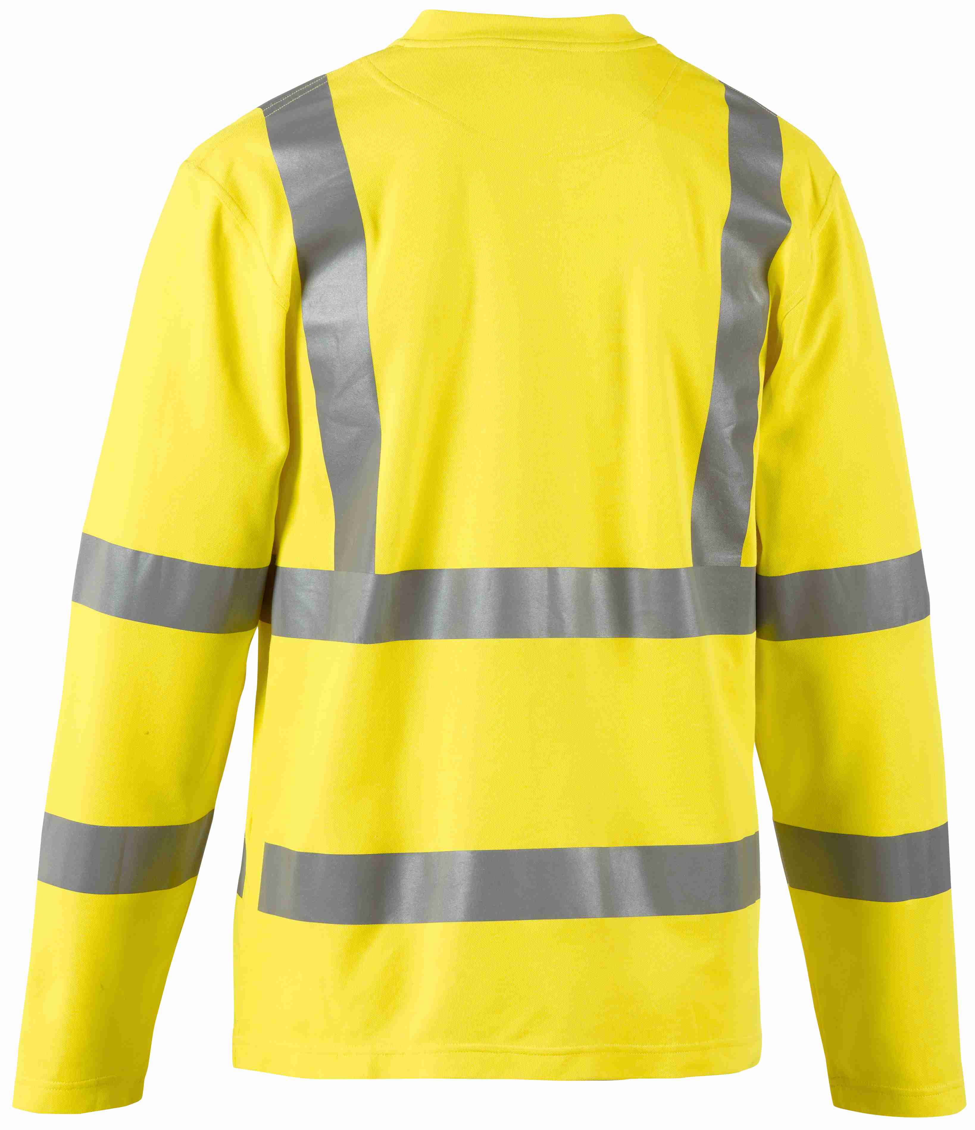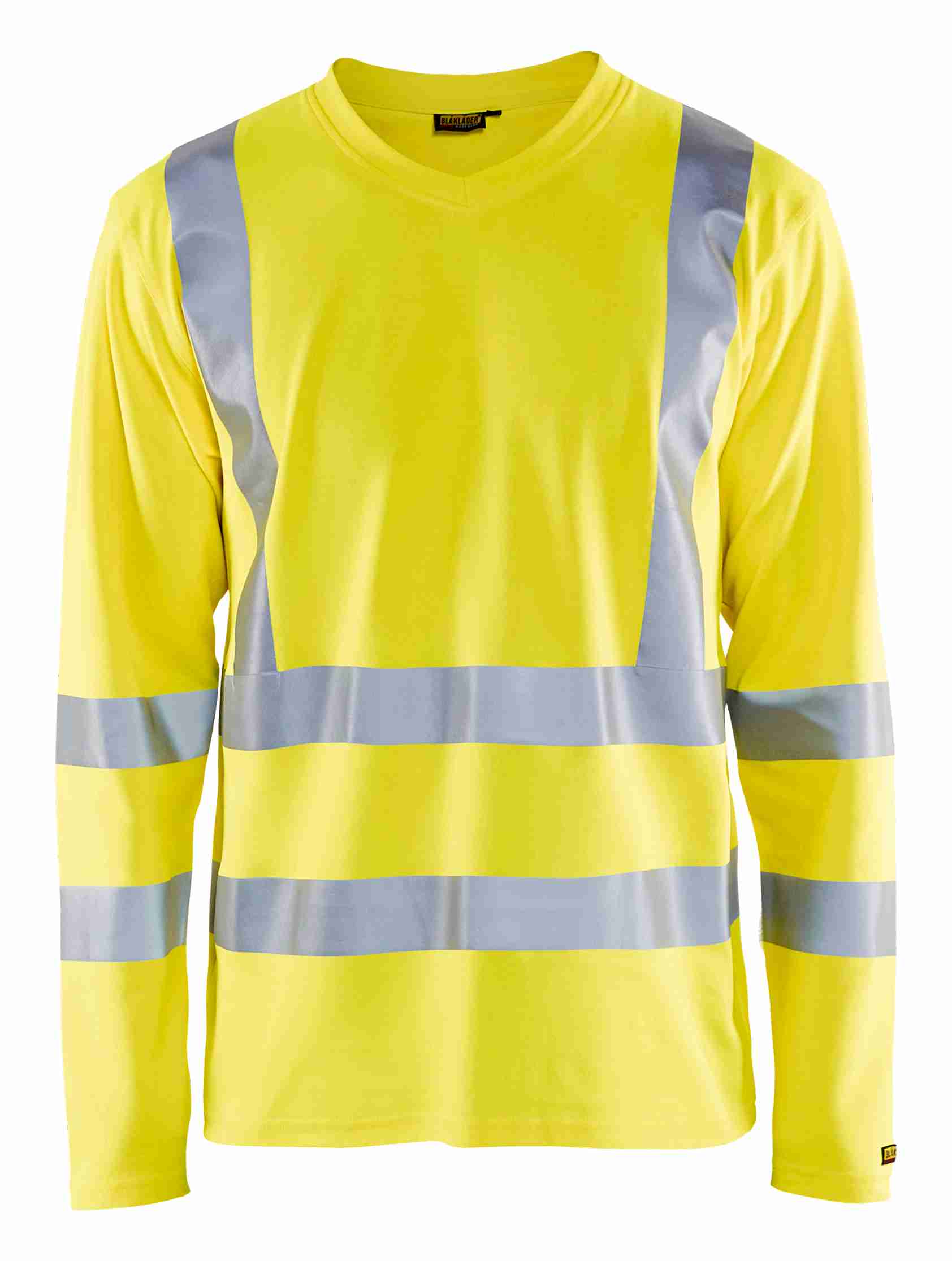 Langærmet High Vis T-shirt med v-hals i et blødt materiale. En fantastisk t-shirt, der er dejlig og komfortabel at arbejde i. T-shirten beskytter mod UV-stråling og har en solcreme faktor på 40+. Reflekser er trykt på. Certificeret i henhold til EN ISO 20471, klasse 3, beskyttelsesbeklædning med høj synlighed og EN 13758-2 UPF 40+ sol UV-beskyttende egenskaber.