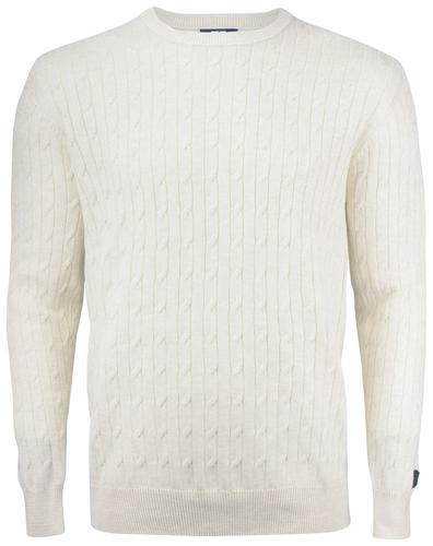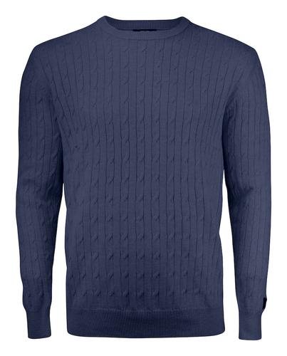 Blakely er lavet af blødt bomuldsgarn, designet med inspiration fra amerikansk rugby og skandinavisk enkelhed. En tekstur af krydsede lag skaber det kablede strik mønster. Blakely er en klassisk model i moderne pasform med rund halsudskæring og ribbede ærmer og forneden.