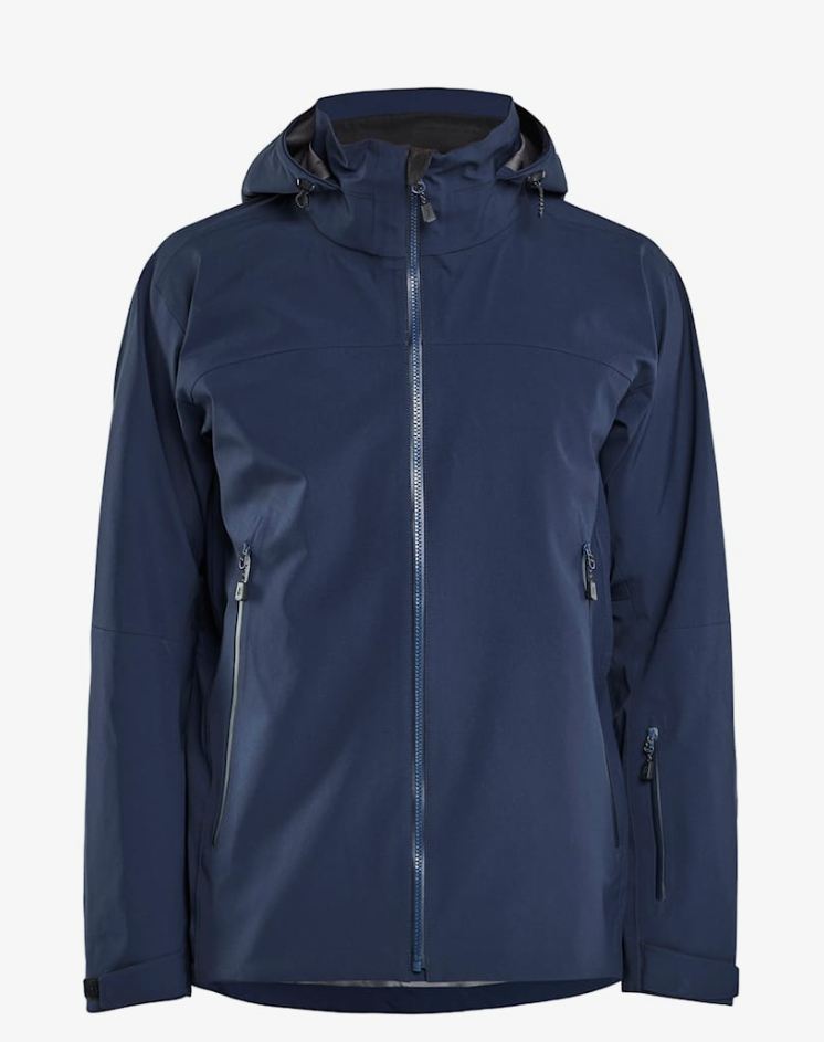 Åndbar Tapede sømme Vind- og vandtæt Lynlås i armhulerne for ekstra ventilation Slidstærk 4-vejs stretch PFAS-frit vandtæt materiale Vandafvisende lynlåse Lynlåse i armhulerne for ekstra ventilation Bløde ultrasonisk svejsede sømme Mange lommer til opbevaring Reflekterende detaljer Ærmelomme med vandafvisende lynlås Certificeret i henhold til EN 343 klasse 4,4