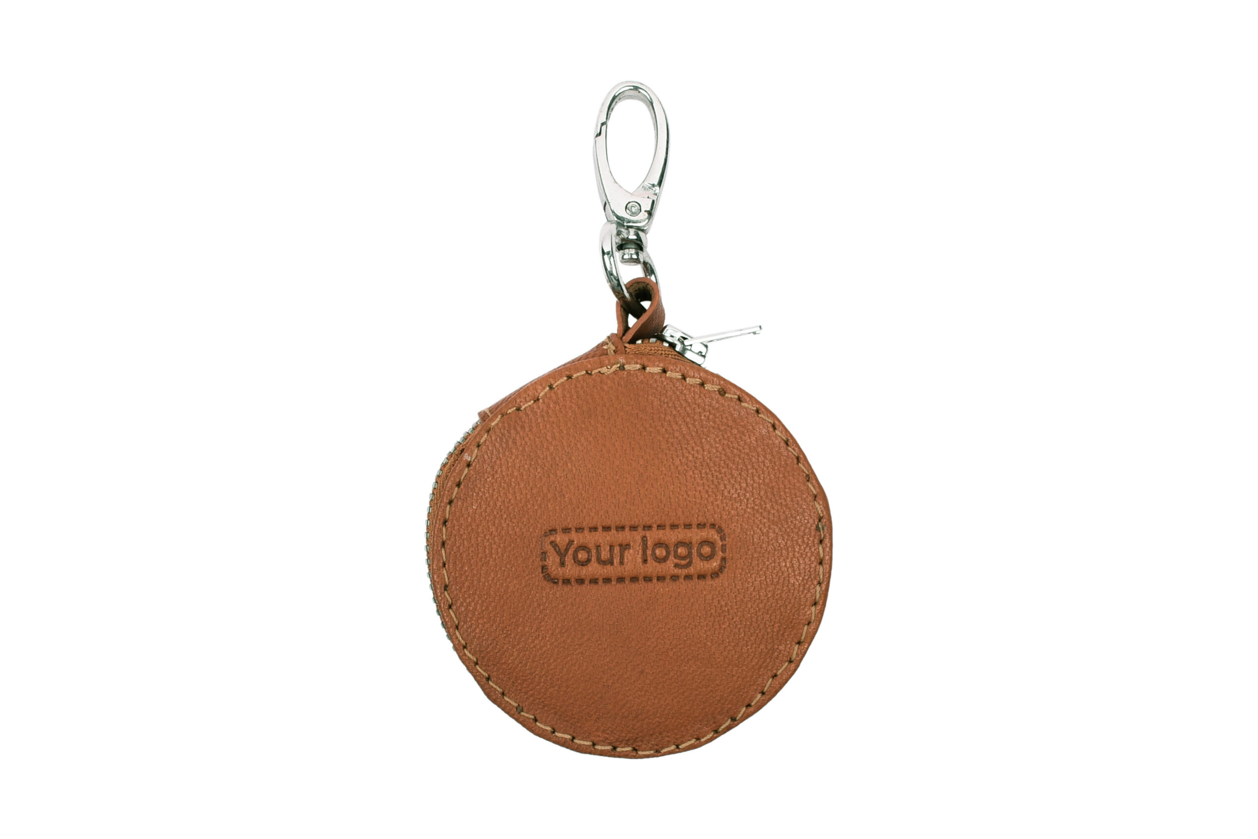 Fin nøglering/Pung med plads til mønter, kvitteringer m.m. Lavet i vegetabilsk garvet skind. Logo varmepræget i skindet. Dog hook i højeste kvalitet. Lynlås fra YKK. Rå bagside. Fåes i Black, Cognac, Mocca eller Dark brown.