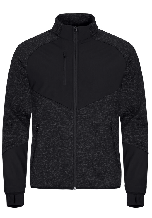n varm, strikket fleecejakke med sektioner af softshell. Tre udvendige lommer med lynlås og to store inderlommer. Elastiske indvendige manchetter med hul til tommelfinger og foldbare refleksbånd. Strop i nakken og en let aftagelig neck label til ommærkning.