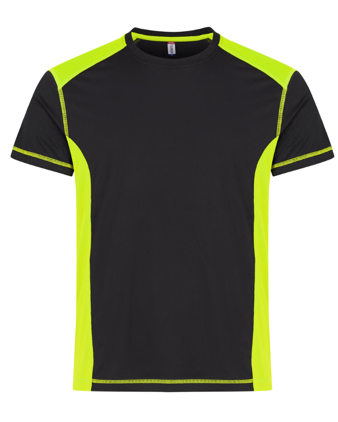Kontrast T-shirt for øget synlighed. Polyestermaterialet er recycled. Kontrastsyning og elastan i kraverib. Forstærket nakketape og en let aftagelig neck label for enkel ommærkning.