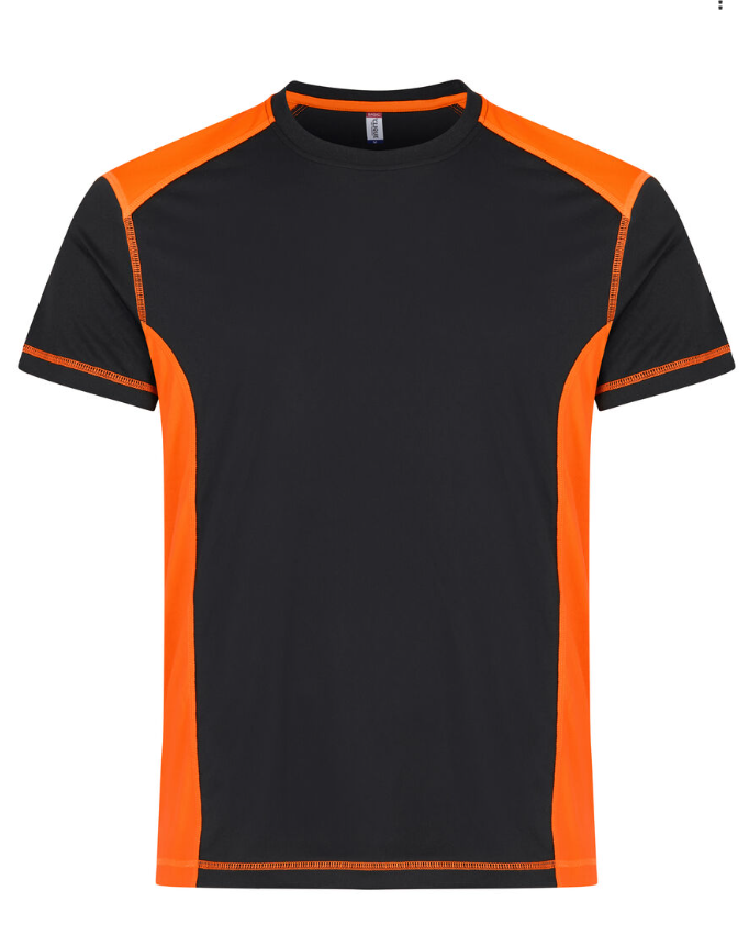 Kontrast T-shirt for øget synlighed. Polyestermaterialet er recycled. Kontrastsyning og elastan i kraverib. Forstærket nakketape og en let aftagelig neck label for enkel ommærkning.