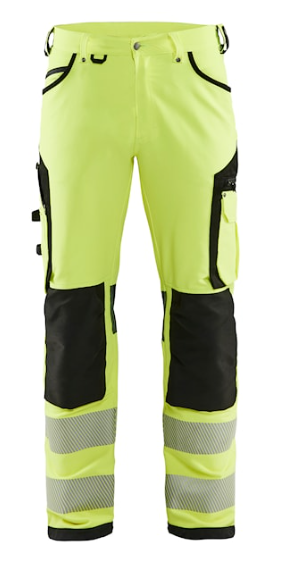 AFSLUTNING: Justerbar benafslutning med snøre og CORDURA®-forstærkning. CERTIFICERING: EN 14404:2004+A1:2010 sammen med knæpuder 4027, 4057, 4058 og 4032. Samcertificeringskategori Y. DETALJER: Plastlynlås. D-ring. Metalknapper. Knivholdere med knap. Brede stropper bagerst og i siderne. 2-nålssøm på indvendig ben. D-ring i taljen. FORSTÆRKNING: CORDURA® forstærket baglommer. FUNKTIONALITET: 4-vejs stretch. LOMMER: Baglommer med forstærket læg og en med lukning. Indstikslommer. Knælommer. Lårlomme med læg og klap samt velcrolukning og indvendig telefonlomme i mesh. Forstærket tommestoklomme med knivholder og blyantlomme. NØGLEFUNKTIONER: EN ISO 20471. Vej- og anlægsarbejder. REFLEKS: 70 mm brede transfer reflekser. STOF: Stretch. High vis gul. Knælommer. Mænd. VASKEANVISNINGER: Antal vaske: x 20. Tåler ikke tørretumbling