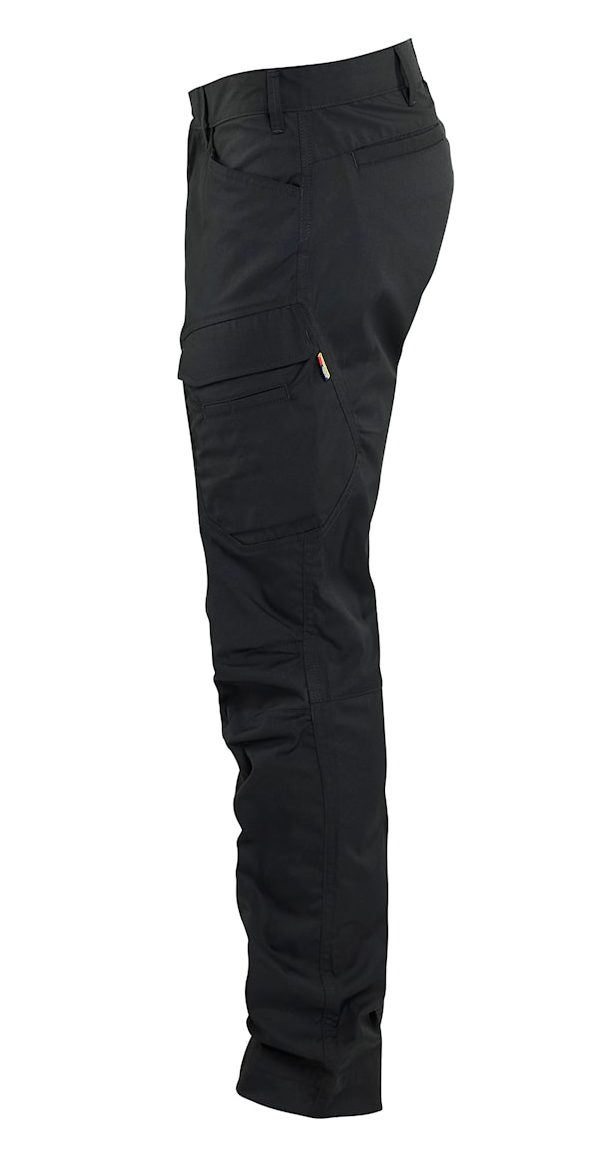Industri- og servicebukser i et let, slidstærkt og fleksibelt 2-vejs stretch materiale, der kombinerer polyester, bomuld og elastomultiester – en stretchfiber, der tåler højere vasketemperaturer og giver øget komfort hele arbejdsdagen.