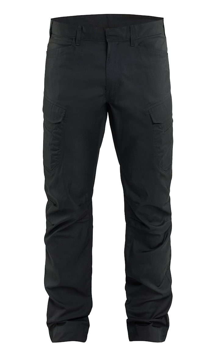 Bukserne har formsyede ben for optimal komfort og er metal- og ridsefri, hvilket gør dem særligt velegnede til industrimiljøer med høje sikkerhedskrav.