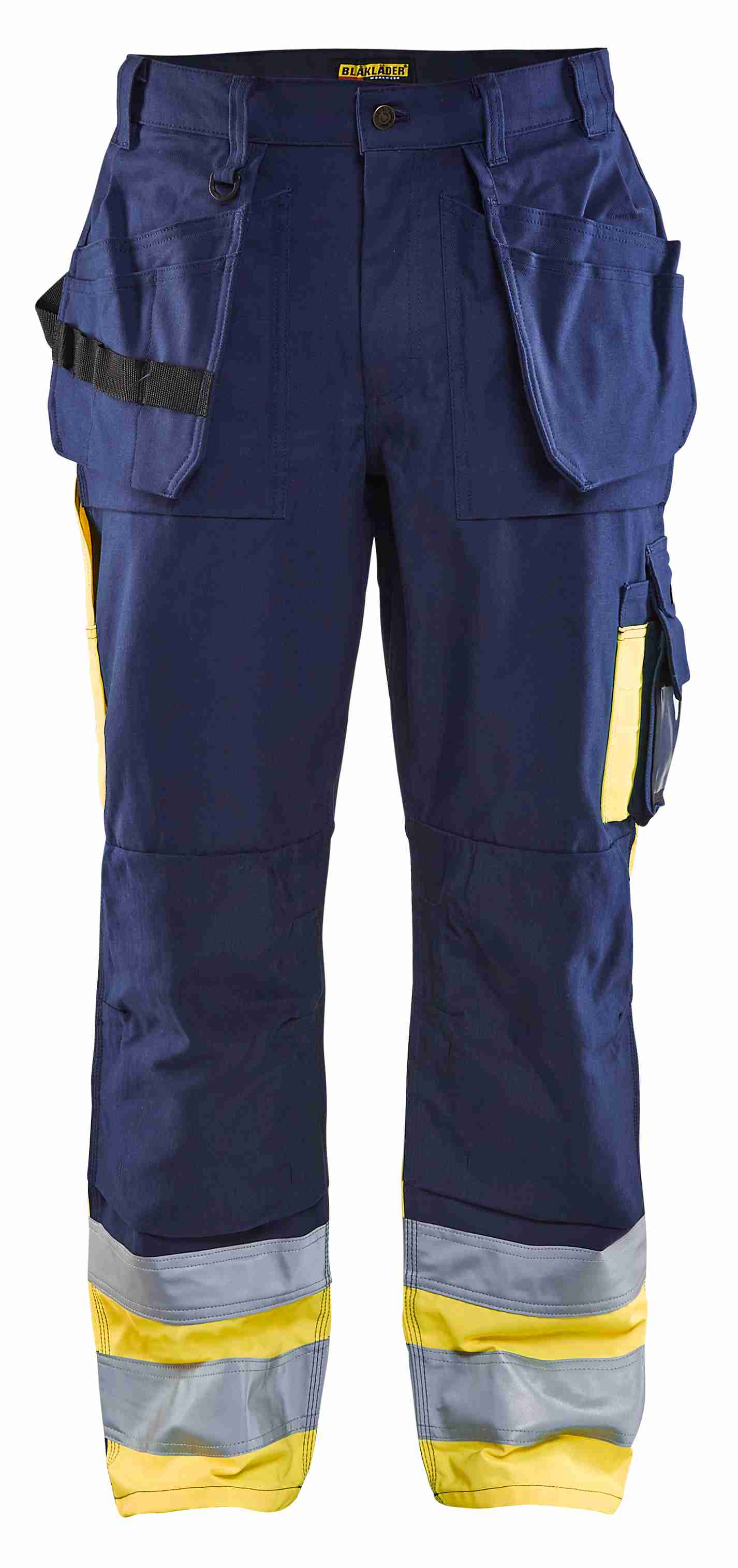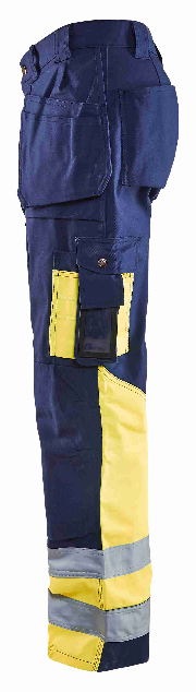High-vis buks med CORDURA®-forstærkninger på knæ for ekstra slidstyrke. Denne buks gør, at du er rigtig klædt på. Giver god sikkerhed og indbygget funktionalitet. Tommestoklomme med ekstra lomme. Certificeret i henhold til EN20471, klasse 1 sikkerhedsbeklædning med høj synlighed.