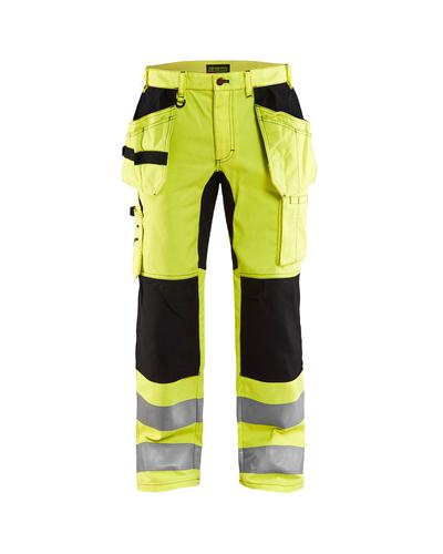 High vis buks med stretch paneler i skridt og hofte samt knælommer i CORDURA® stretch for optimal komfort. Buksen har sømlommer samt tommestoklomme. Certificeret i henhold til EN ISO 20471, klasse 2, sikkerhedsbeklædning med høj synlighed. Findes også i damemodel 7163.