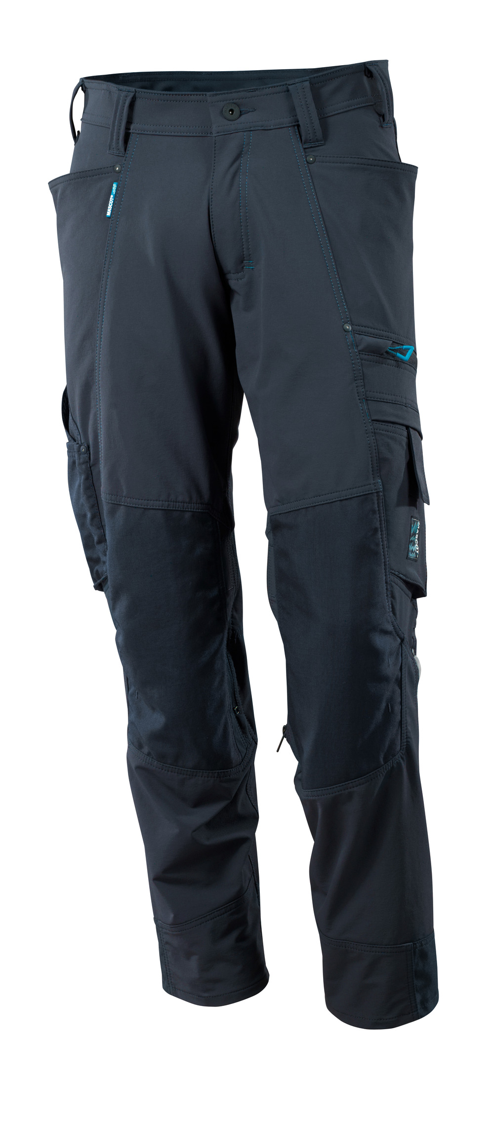Har en vandafvisende finish. Fire-vejs strækstof med lav vægt og høj slidstyrke. Stoffet mærkes nærmest ikke mod huden, da lommerne er integrerede i designet. Tonålssømme på ben og i skridt. Lav talje. Bukseben er ergonomisk formede. Bæltestropper. Gylp med lynlås. Forlommer. Baglommer. Lårlomme med telefonlomme. Tommestoklomme i CORDURA® med ekstra lommer. Knælommer i slidstærk CORDURA® (500 D). Reflekseffekter.