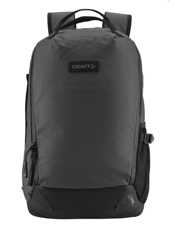 Recycled materiale • Vandtætte lynlåse • Sidelomme til vandflaske • Polstret computerlomme • Refleks detaljer