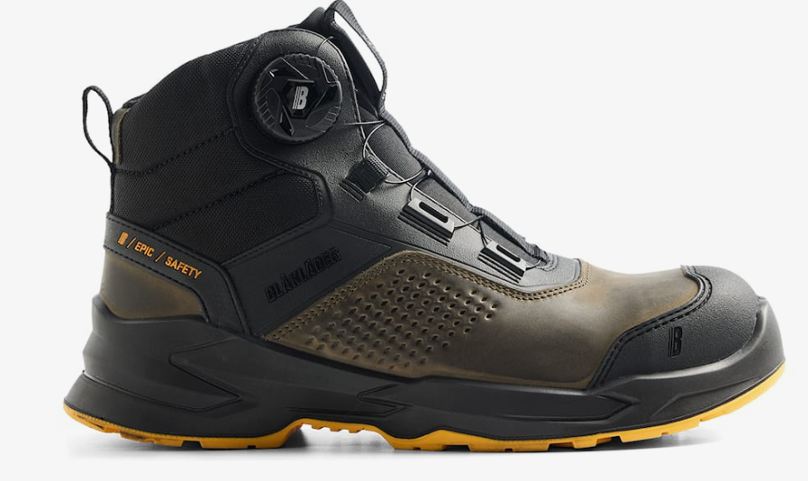 Vandafvisende og slidstærk Freelock-lukning på siden Komposittåkappe Tekstilsømværn i PS standard Anatomisk formet, blød ETPU indlægssål Skridhæmmende ydersål Varmeresistent ydersål ESD godkendt Sålen giver stabilitet på stiger og ujævne overflader