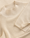 Yarn: 55% RWS Wool / 45% Cotton Ply: 2/34 (2-ply) Knit: 7 gauge Weight: 330 g/sqm Hems: 1x1 rib knit Dye: Top dyed melange Fully fashioned