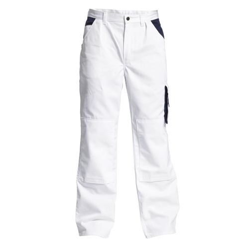 2-farvet buks i flot design. 2 sidelommer, den ene med møntlomme. 2 baglommer. Rummelig lårlomme med mobiltelefonlomme og blyantlommer. Hammerstrop. Forstærket tommestoklomme med læg for ekstra plads. Knæforstærkning/knælomme med velcrolukning i bunden samt indstillingsmuligheder til knæpude.