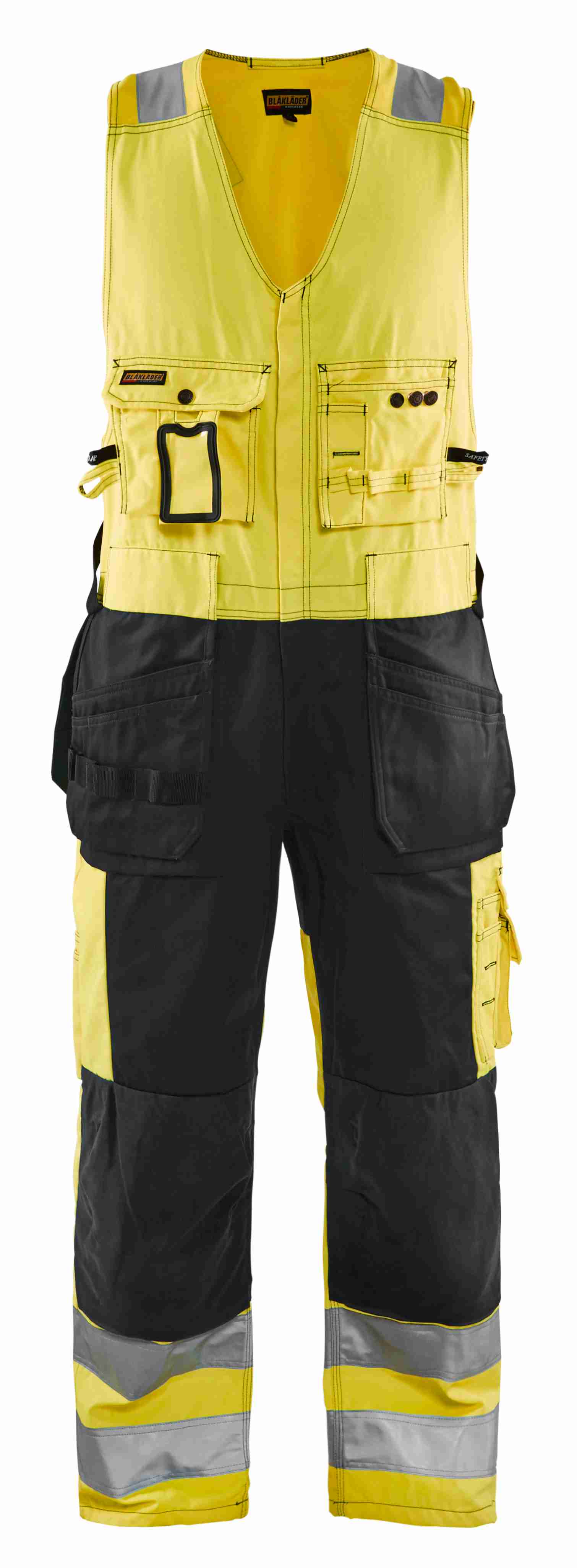 Komfortabel helbuks med stretch i ryggen og justerbar ved skuldersøm. Knælommer i Cordura®. Certificeret i henhold til EN ISO 20471 klasse 2.