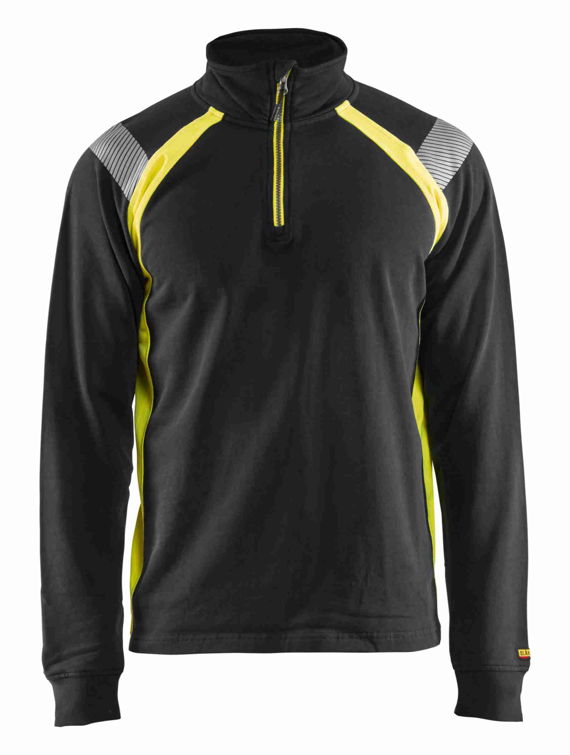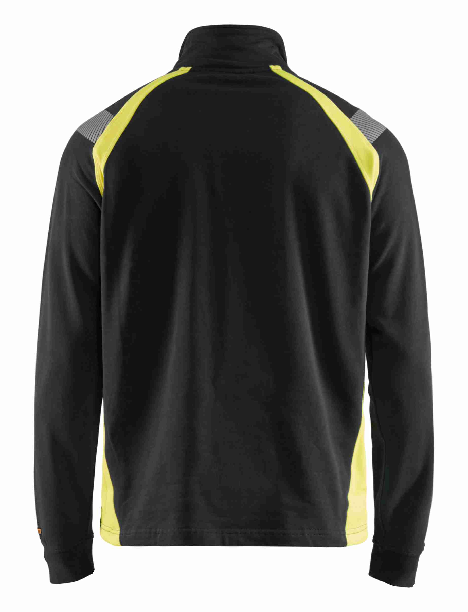 Visible sweatshirt med kort lynlås foran, samt rib i ærmeafslutningen og forlænget ryg. Sweatshirten har fleksible reflekser og paneler i High Vis for øget synlighed. De mørke områder på sweatshirten er 100% bomuld, og High Vis områderne er 100% polyester.