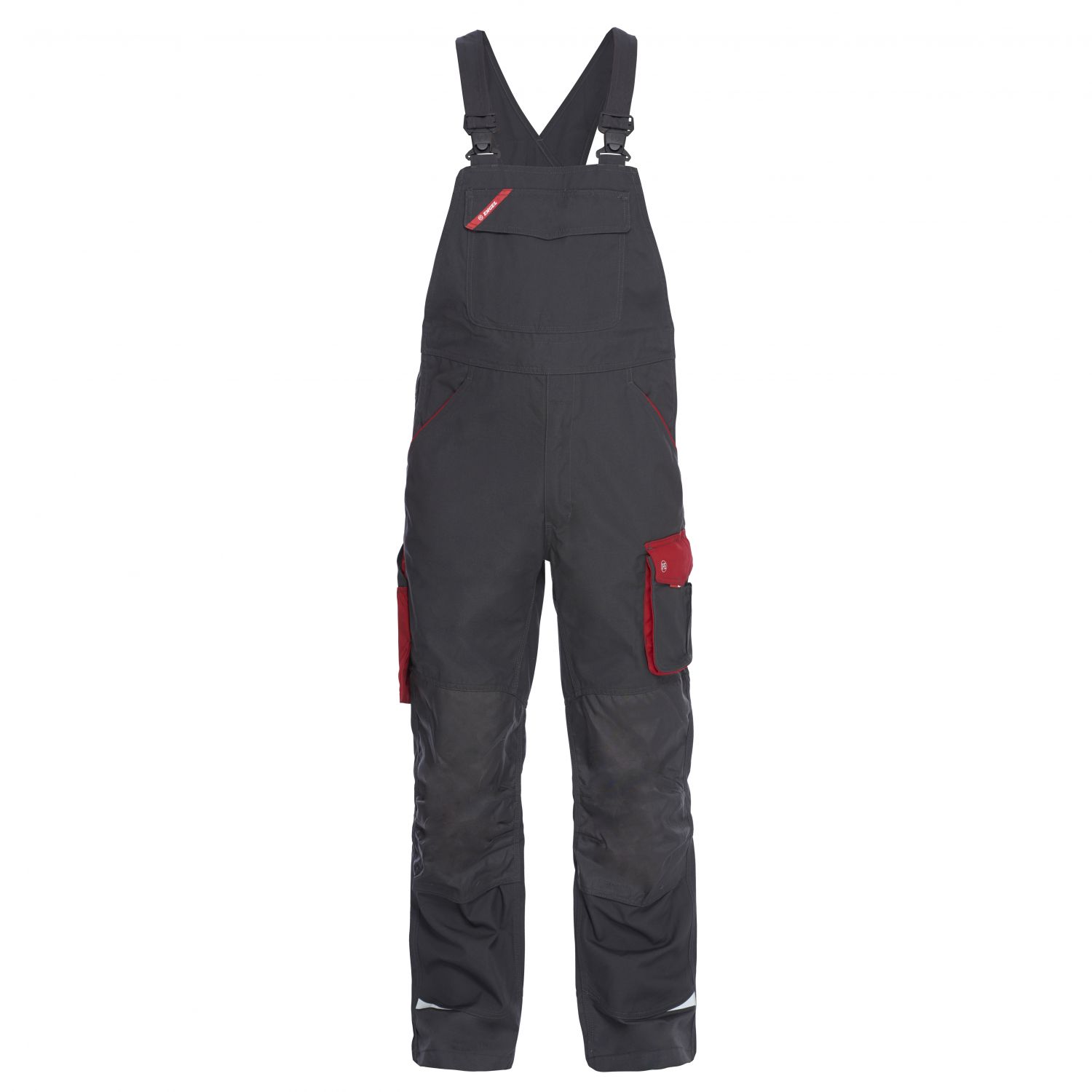 Funktionel overall med mange detaljer. Optimal pasform med bl.a. ergonomisk formet knæparti og panel i indersøm, der giver en behagelig skridtsøm. Bredt elastisk rygstykke og regulerbare seler. Smæklomme med ekstra indstik til f.eks skriveredskaber. Under lommeklappen findes en strop med D-ring til fæstning af f.eks. ID-kort. Rummelig lynlåslomme på bagsiden af smækken. To rummelige skrålommer foran. To rummelige baglommer med klap og velcrolukning. Lårlomme med lynlåslomme til f.eks. mobiltelefon samt ekstra mindre lomme. Lårlommen har boxeffekt, hvilket gør den meget rummelig og endvidere har den løsthængende bund for øget bevægelighed. Tommestoklomme med ekstra inddelinger og forstærket bund. Også tommestoklommen har frithængende bund for øget bevægelighed. Knæforstærkning/knælomme med velcrolukning forneden samt to indstillingsmuligheder til knæpude. Forstærkning i bunden af buksebenene både bagpå og foran for ekstra slidstyrke. Reflekser ved knæ og nederst på buksebenene for øget synlighed. Egnet til industrivask.