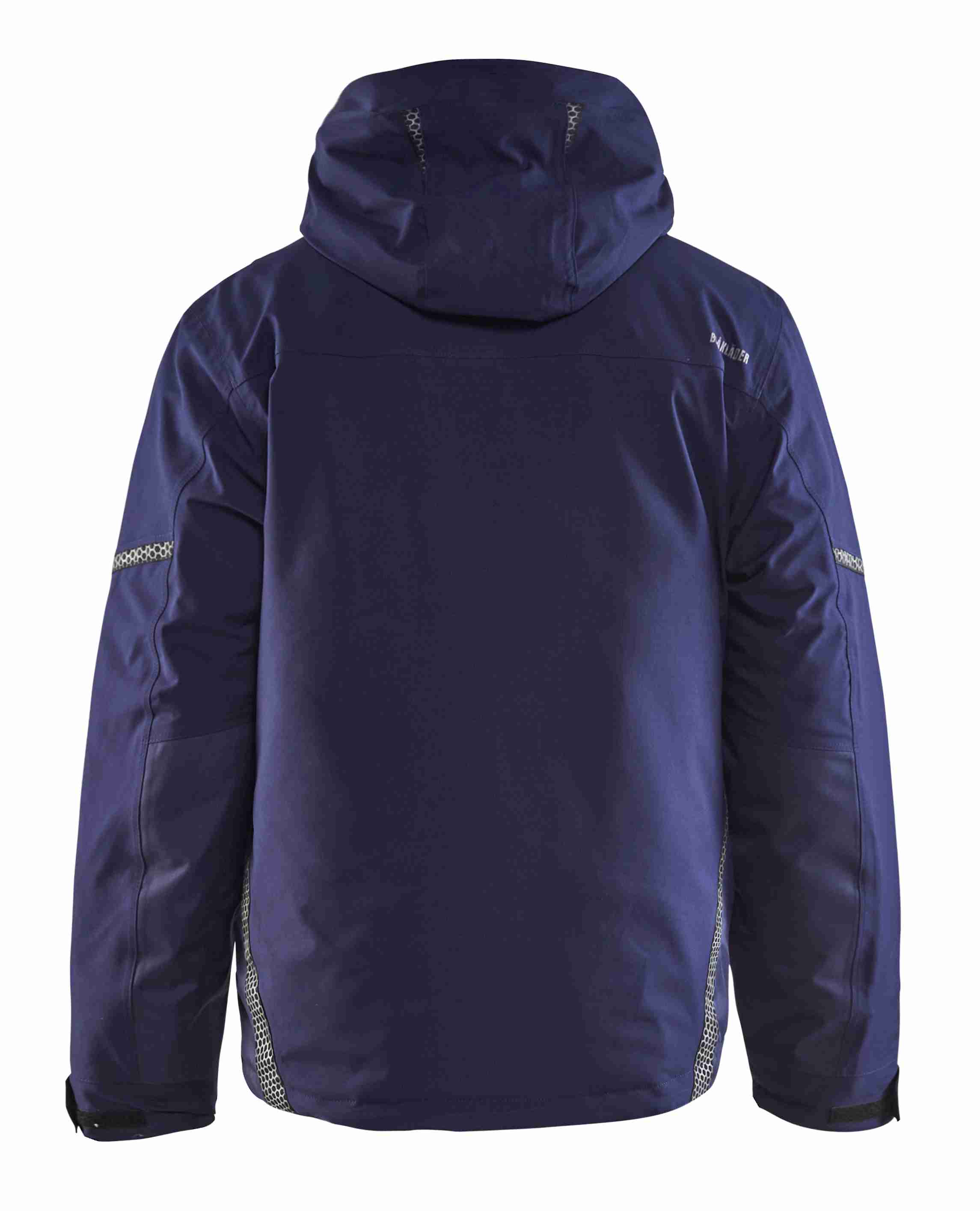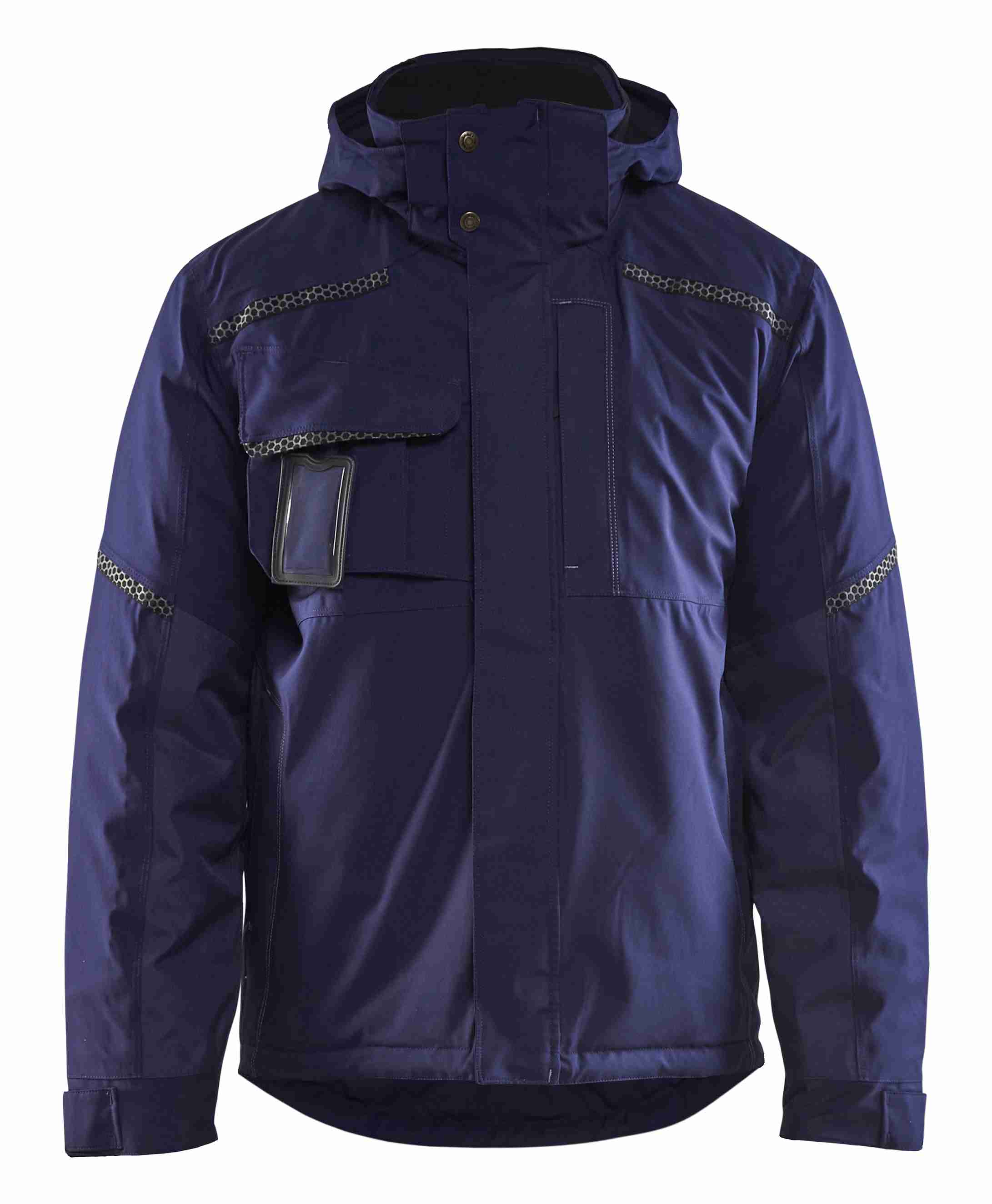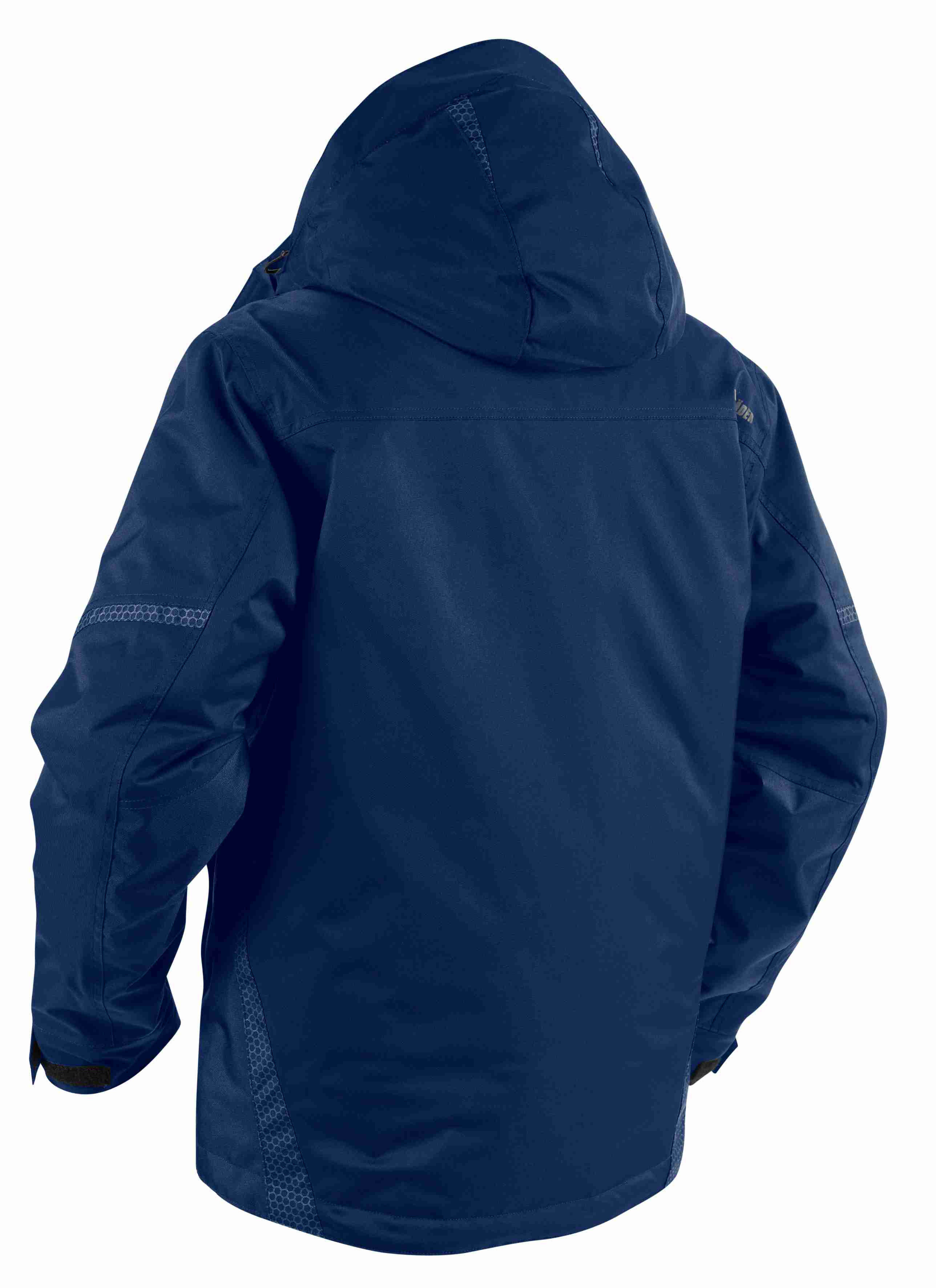 Funktionel vind- og vandtæt vinterjakke med tapede sømme, fleece foret krave og aftagelig hætte, der er justerbar. Den har mesh for på de store sved zoner for at transportere fugt væk fra kroppen. Jakken er udstyret med en række lommer, såsom brystlomme til kuglepenne eller mobiltelefon, inderlomme og forlommer med lynlås og indvendig fleece. Refleksdetaljer på front, ryg, hætte og ærmer. Ærmeafslutningen kan justeres med velcro og har tommelfingergreb. Perfekt til at bære under de kolde vinterdage. Certificeret i henhold til EN 342 beklædning til beskyttelse mod kulde med vinterbuks model 1810 og EN 343 beklædning mod dårligt vejr.