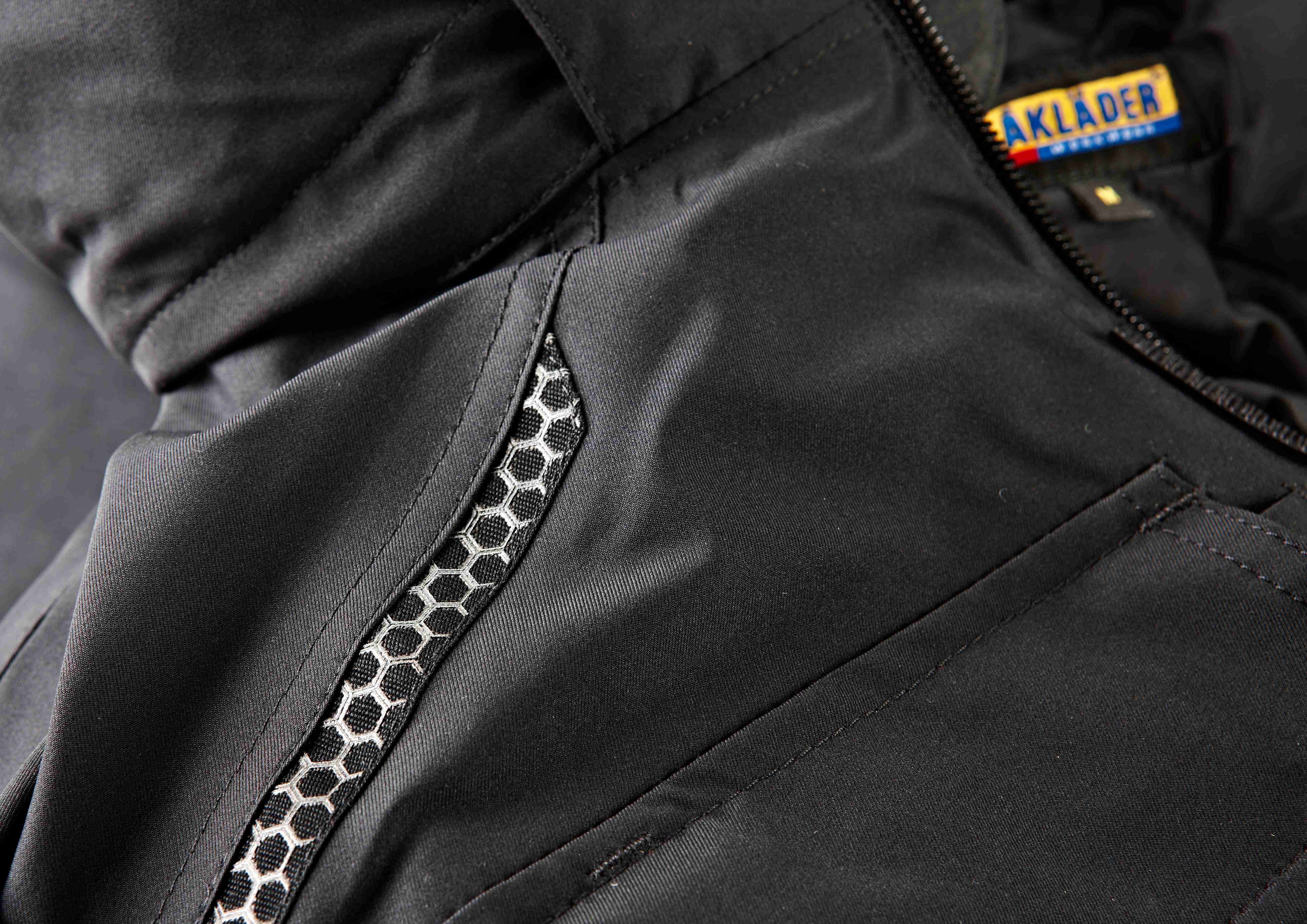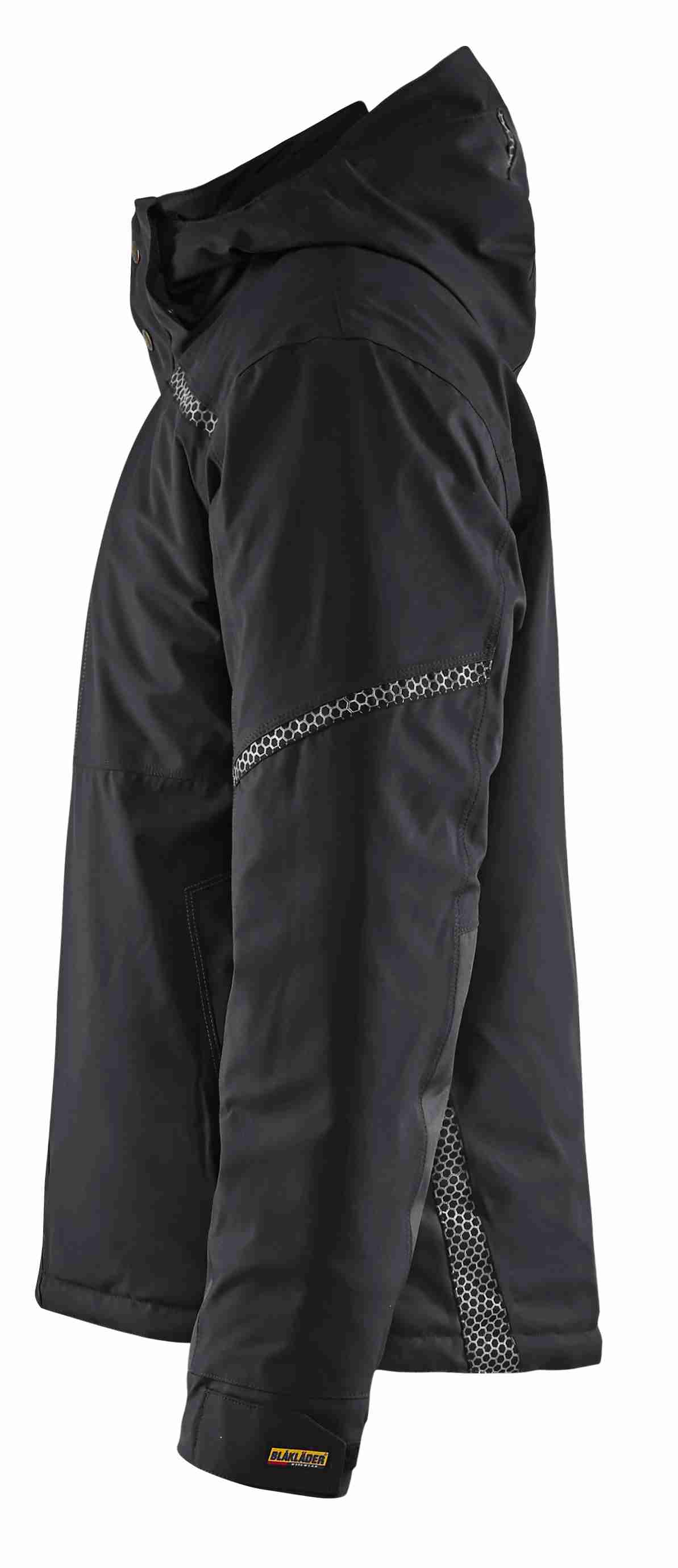 Funktionel vind- og vandtæt vinterjakke med tapede sømme, fleece foret krave og aftagelig hætte, der er justerbar. Den har mesh for på de store sved zoner for at transportere fugt væk fra kroppen. Jakken er udstyret med en række lommer, såsom brystlomme til kuglepenne eller mobiltelefon, inderlomme og forlommer med lynlås og indvendig fleece. Refleksdetaljer på front, ryg, hætte og ærmer. Ærmeafslutningen kan justeres med velcro og har tommelfingergreb. Perfekt til at bære under de kolde vinterdage. Certificeret i henhold til EN 342 beklædning til beskyttelse mod kulde med vinterbuks model 1810 og EN 343 beklædning mod dårligt vejr.