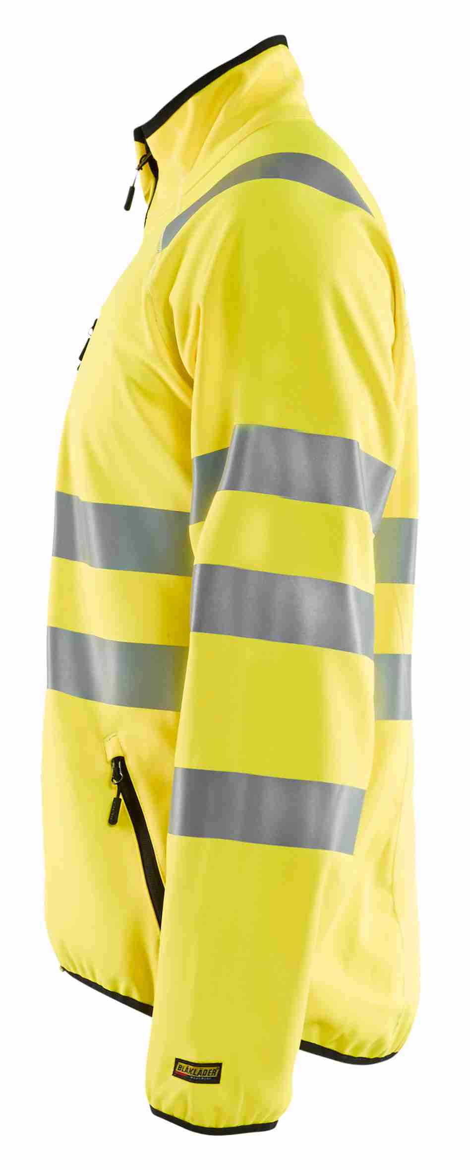 High Vis jakke med høj hals, der kan bæres hele året rundt, enten som et mellemlag under en jakke eller som det yderste lag - afhængig af vejret. Jakken er i softshell, ærmer med elastisk bånd og tommelfingergreb samt elastisk bånd forneden for ekstra komfort. Alle lommer er med lynlås. Certificeret i henhold til EN ISO 20471 Klasse 3