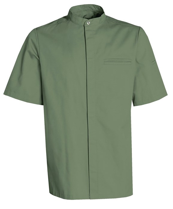 Smart og minimalistisk kortærmet kokkejakke i jordfarver, passer perfekt til både mænd og kvinder. Designet med ergonomisk silhuet, som giver jakken en høj funktionalitet og komfortabel pasform.