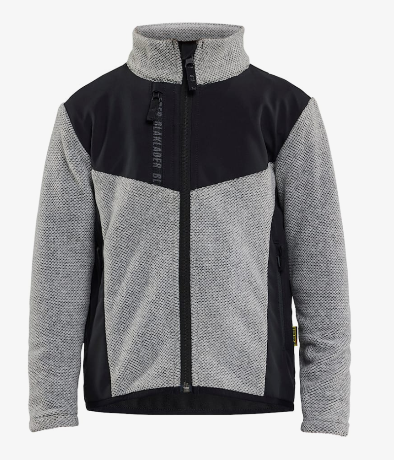 En strikket fleecetrøje til børn i en blød og komfortabel fleecekvalitet. Materialet beskrives bedst som tredimensionel fleece. Strækbar, fleksibel og varm.