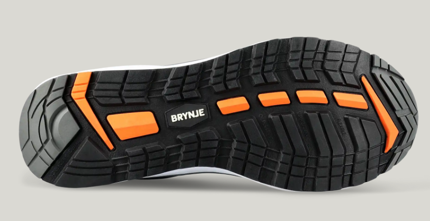 Gummi-ydersålen er skridhæmmende, og kombineret med en blød, stødabsorberende mellemsål i EVA giver det en komfortabel og fleksibel sko. Sålen består også af en gelenk, der giver skoen stabilitet og mindsker vrid og belastninger på hælen. Sålmønstret er designet med store knopper og brede riller, så jord, sand, vand og mudder nemt kan løbe derfra og give godt fodfæste. Indlægssålen er stødabsorberende, blød, fleksibel og åndbar og består bl.a. af upcycled PU-skum, der er skumrester fra indlægssålsproduktion. ESD-godkendt.