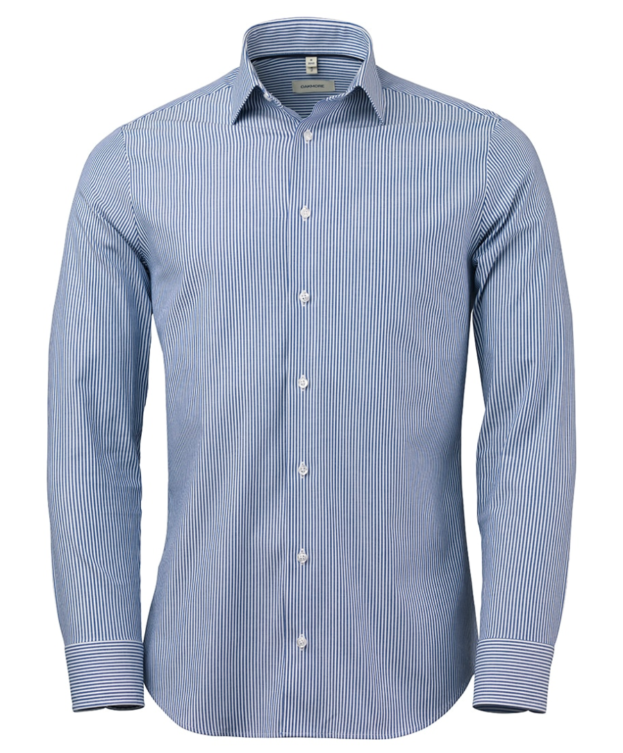 Den har en cut away krave og OAKMOREs standard knapper i recycled polyester med matchende knaptråd